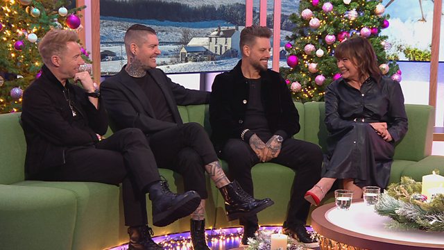 Broadcaster Lorraine Kelly and Boyzone's Ronan Keating, Keith Duffy and Shane Lynch join Alex Jones and Lauren Laverne on the sofa.