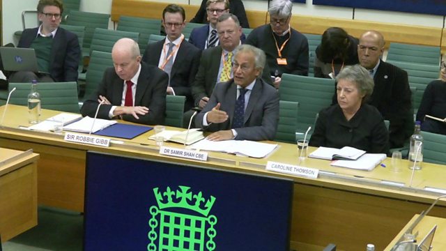 Coverage of the Culture, Media and Sport select committee session on the governance and work of the BBC with evidence from former editorial advisers Caroline Daniel and Michael Prescott, the chair of the BBC, Dr Samir Shah, and non-executive members of the BBC Board Caroline Thomson and Sir Robbie Gibb, from Monday 24 November.