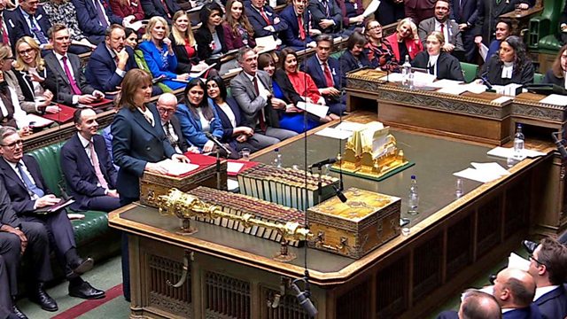Coverage of the Budget statement in the House of Commons by chancellor of the exchequer Rachel Reeves and responses from the leader of the opposition Kemi Badenoch, chair of the Treasury committee Dame Meg Hillier and Liberal Democrat leader Ed Davey, from Wednesday 26 November.