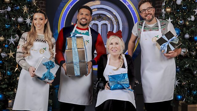 GK Barry, Kola Bokinni, Nikki Fox and Iain Stirling compete in the 2025 Celebrity MasterChef Christmas Cook-Off.