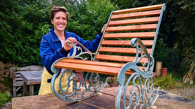 Lauren begins restoring a large garden rocking chair that's currently unusable. She tackles a wobbly table and works her magic on a sweet pair of items from Russell’s childhood.