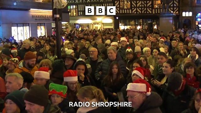 Clare Ashford and Adam Green lead an hour of festive songs from the Square in Shrewsbury.