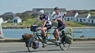2/5Somhairle and his brother Innes have a challenging start on their first day cycling.