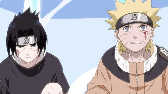 Sasuke finds himself in a pinch inside of Haku's Crystal Ice Mirrors, but Naruto comes to the rescue.