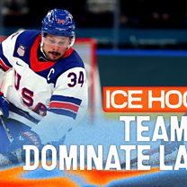 USA defeat Latvia in the men's Ice Hockey as they look to win their first gold since 1980.
