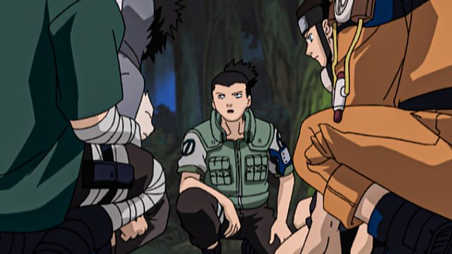 The Sound Ninja Four race toward Orochimaru’s lair with Sasuke in hand. They’re discovered and challenged by the jonin Genma and Raido, but the Leaf ninja are already fatigued, and they fall to the Sound. Meanwhile, Shikamaru’s retrieval squad proceeds to follow the Sound with caution.