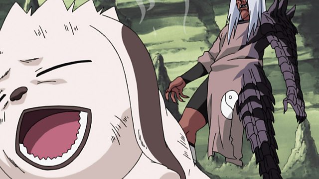 Ukon, who is able to infiltrate the bodies of others, enters Kiba’s body and tries to merge with his cells. Elsewhere, Naruto is shocked by the power of Kimimaro’s Kekkai Genkai, and Shikamaru is in a desperate battle with Tayuya and her giant beasts. Is this the end for the Leaf?