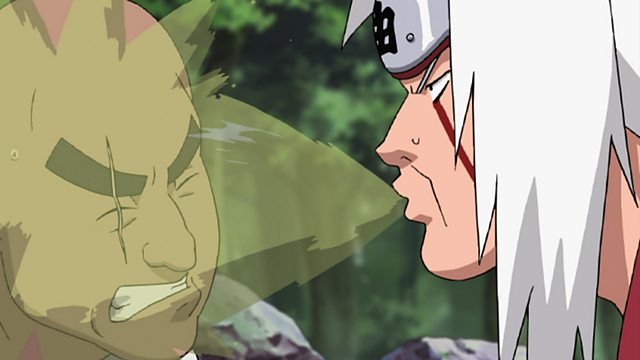 Naruto, Sakura and Sasame are attacked by Kamikiri, Jigumo and Kagero of the Fuma Clan. Jiraiya arrives just in time and joins in the fight. Guided by Sasame, the trio arrives at the entrance to the Hidden Sound Village where Orochimaru is hiding out!