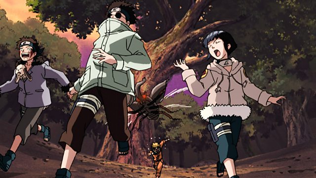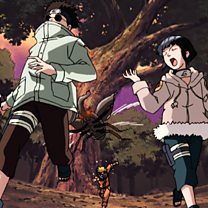 Squad 8 and Naruto arrive at the Bikochu’s habitat. They use a photograph to guide them in their search, but Naruto is unable to tell the difference between the bugs. Concealing themselves, Suzumebachi, Kurobachi and Jibachi spy on them and also conspire to take possession of a Bikochu!