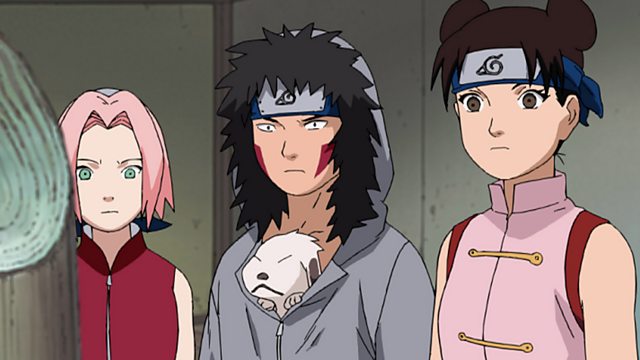 Naruto and his team desperately try to gather the scattered blueprints. It becomes clear that the Hidden Waterfall Village maneuvers and Genno are totally unrelated. Shikamaru thinks that Genno wanted to divert attention outside the village. And the eleven genin including Naruto who are searching the Academy face an astonishing truth…