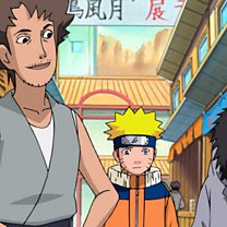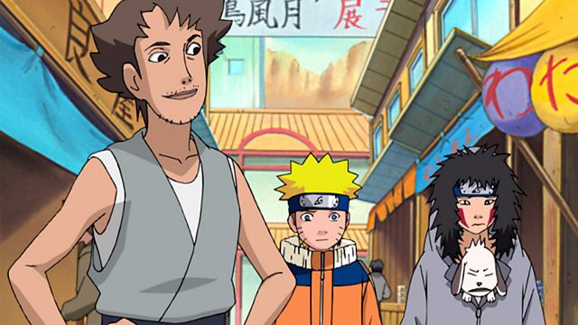 Naruto and Kiba's mission is to guard a prized tea bowl and meet the client Shinemon.