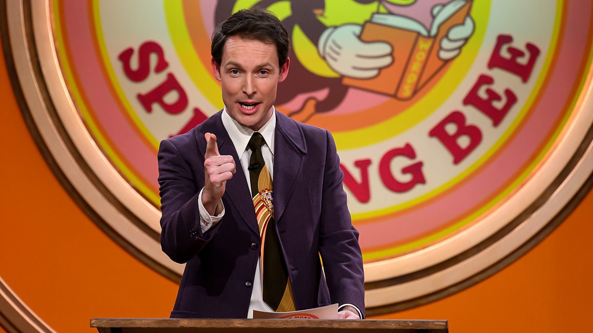 Four comedians compete in a comedy spelling bee hosted by Guy Montgomery and Aaron Chen.