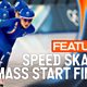 Action from the speed skating mass start finals from Milano Speed Skating Stadium.