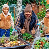 Novah, Nelly and Aaron are all ears as they discover lots of different sounds in the city centre garden – from tweeting birds and rustling leaves, to cars and a crane!
