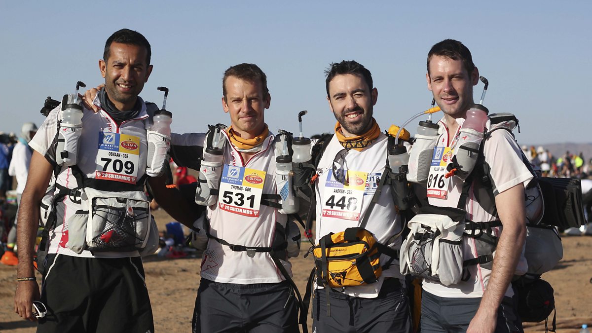 We follow four friends as they attempt to complete what some describe as 'the toughest footrace on earth' - the Marathon des Sables, a six-day, 250km race across the Sahara Desert.