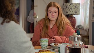 Mae Gaynor yn cael hi'n anodd addasu yn ôl i fywyd yng Nghwmderi. Mae Parti Lleucu'n tr...
