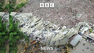 At least one warehouse was completely destroyed; the cause of the collapse is unknown.