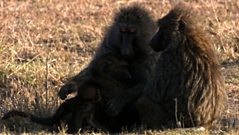 As dusk creeps up the flanks of Mount Suswa a troop of baboons gathers for the night. Most baboons roost in the treetops to avoid night prowling leopards or lions, but these baboons are heading downwards to an underground chamber in the rocks. Known locally as the baboon's parliament, the walls of the chamber have been worn glassy-smooth by the hands and feet of generations of baboons. Rock climbing in the dark on polished holds could be considered a hazardous sport, but presumably these baboons find it less scary than sleeping outside with the leopards. The baboons’ final destination is a series of small ledges high up on the cave wall. Safe beyond the reach of predators, and protected by a roof of solid rock, the cave dormitory stays warm and dry even at the height of the rainy season.