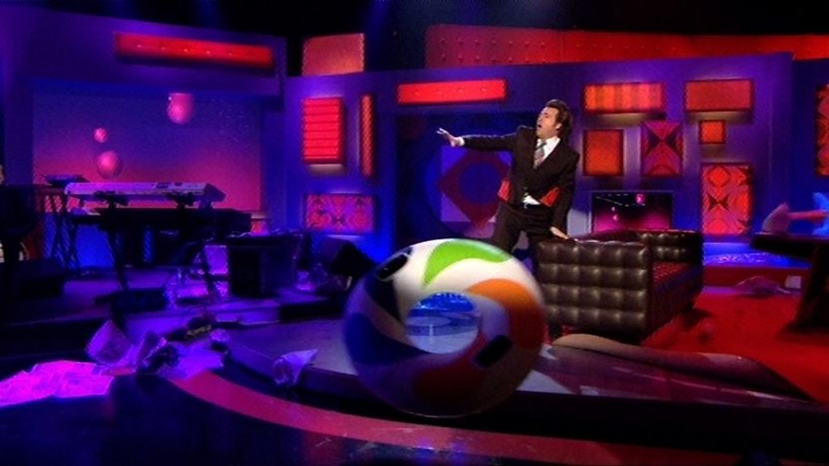 A huge wind blows through the Friday Night with Jonathan Ross studio.