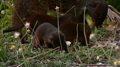 While the banded brother mongoose family forages for food away from the den, they fail to notice that the pups are in danger. Lurking in the shadows are three rogue males from the rival group, the striped gang. Attracted by the scent of females in season, these three likely lads are hoping for a sneaky mating. It's a risky strategy, but with the banded brother males away and only two males on duty at the den, this could be their only chance to score. One of the rogue males takes his chance, coming dangerously close to the den entrance, but he's spotted and quickly chased away. However, when the guards return from the chase something is wrong. The pups are alone at the den and their female guardian has vanished! She's been lured away by the rogue striped males and she's clearly up to no good. Receptive females will often mate with males from other packs during territorial fights, but this is particularly brazen. As she moves closer to the den, the males of the family manage to usher her out of their rivals' grasp. Its now a staright fight between the males of the family. Teamwork enables them to see off these rogue males and protect both den and pups.