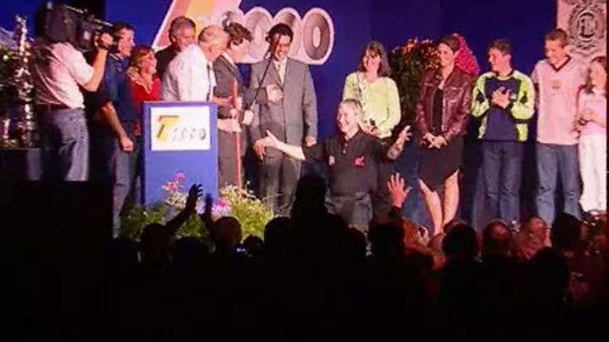Joey Dunlop is awarded the Sword of State by the Isle of Man to recognise his incredible TT record.