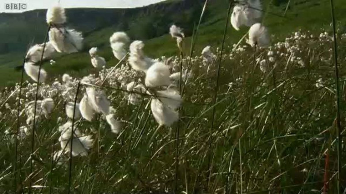 Stanage Edge in Derbyshire is a bleak moorland landscape with poorly drained soil that makes it very boggy. Alan Titchmarsh looks at clumps of cotton grass that break up the great swathes of heather and bracken. But when he looks closer he finds sundew, their rounded leaves covered in hairs exuding a sticky goo. Sundews use the goo to catch insects to supplement their diet, and just one insect will keep a sundew going for months.