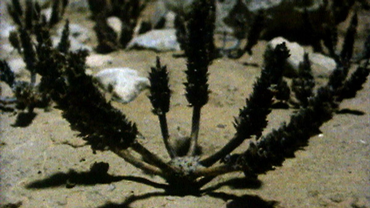 Deserts can remain dry for long periods but when rain does come it can even activate dead stems so that within half a minute they are standing erect once more. Other plants open their seed heads when it rains. Yet none of the plants are alive. Their movement is simply the effect of dead tissues absorbing water. The dead seed heads hold the seeds securely during the drought. But now that there has been rain and therefore a chance of them being germinated, it is time for them to be distributed. For some plants the heavy rain drops are enough to dislodge the seeds, but other plants use the physical effects of absorbing water to shoot the seeds away. Once those seeds land, they too start to absorb water so that the seeds end up in just the right position to send their roots straight down into the ground.