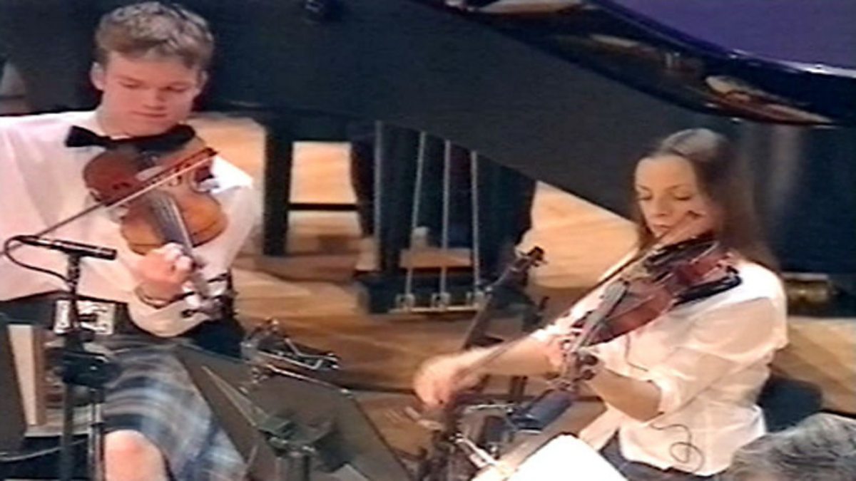 The Celtic Fiddlers play a two step and a tune called ‘Big Jim’s Grubby Digit’ at an Ulster-Scots concert in Belfast’s Waterfront Hall.