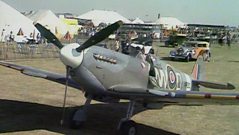 As a Spitfire sweeps through the sky in the background, Raymond Baxter, BBC presenter and former Spitfire pilot, describes its evolution from seaplane to world-famous fighter.