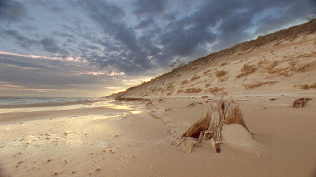 Glaciers melted at the end of the ice age, and this vast quantity of water caused sea level to rise. We're worried about global warming making sea level rise a foot or two, but back then it increased by 300 feet, cutting the British Isles and Ireland off from the rest of Europe. Alan Titchmarsh visits evidence of this: a drowned forest at Bray in County Wicklow. These trees are revealed at low tide, lying where they grew and died 8,000 years ago.