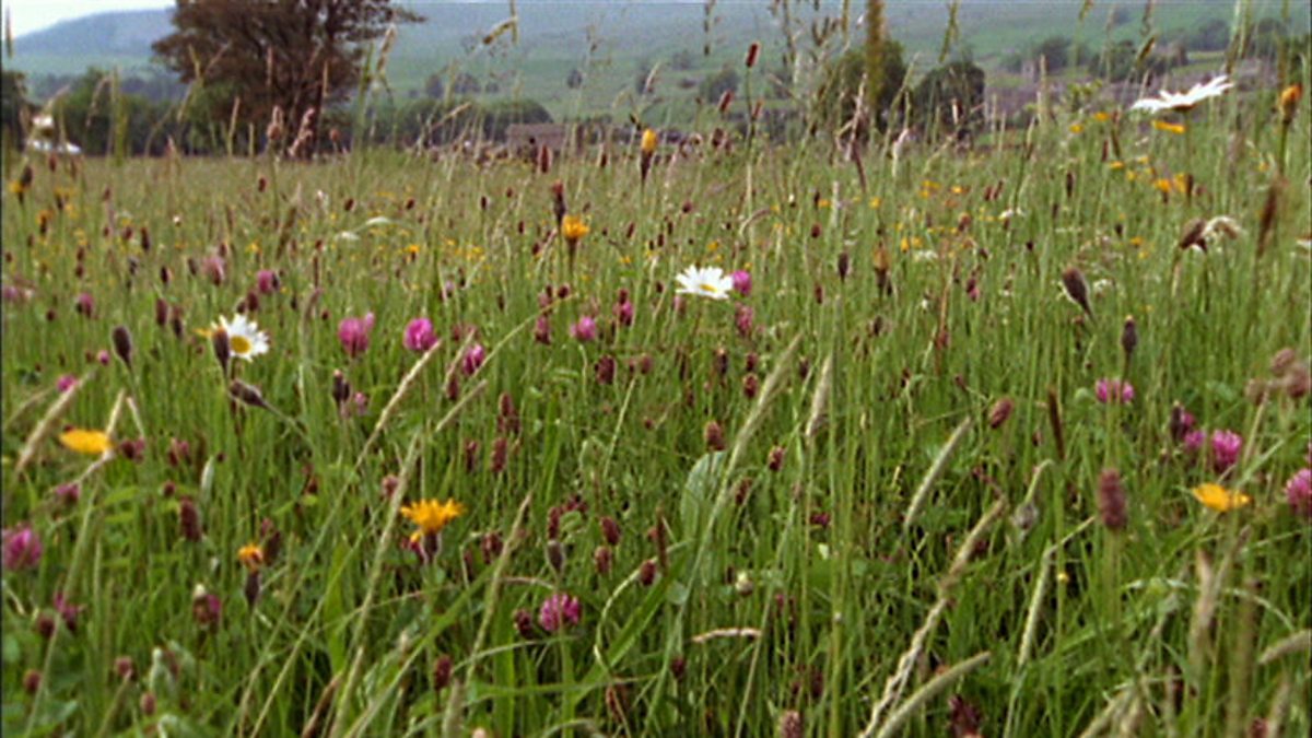 The Yorkshire Dales might seem an unlikely place to look for Roman remains – but I’m not looking for crumbling ruins or ancient coins – I’m after flowers. Back in May, the livestock were shut out of this field to let the grass to grow good and tall for hay, and it has done, along with the buttercups and the clover. And now it’s ready for cutting – but with what? Well, these days the hay is cut by machine, then dried and stored for the winter – but they didn’t have tractors back then. It needed a bit of Roman innovation. That’s where this tool comes in. Before the mowing machine, the scythe was at the cutting edge of cutting technology, and it’s the Romans that brought them to Britain. Without such an efficient cutting tool we wouldn’t have been able to cut hay, so it’s to the Romans that we owe our hay meadows. And what a wonderful spectacle they make – packed with colour from more than 40 different wild flowers – a botanist’s dream! This one, yellow rattle, is particularly useful because it feeds on the roots of grass, weakening it and allowing the other flowers in. Why yellow rattle? Well, when the seeds are ripe, they shake and rattle in those pods just like a rattlesnake.