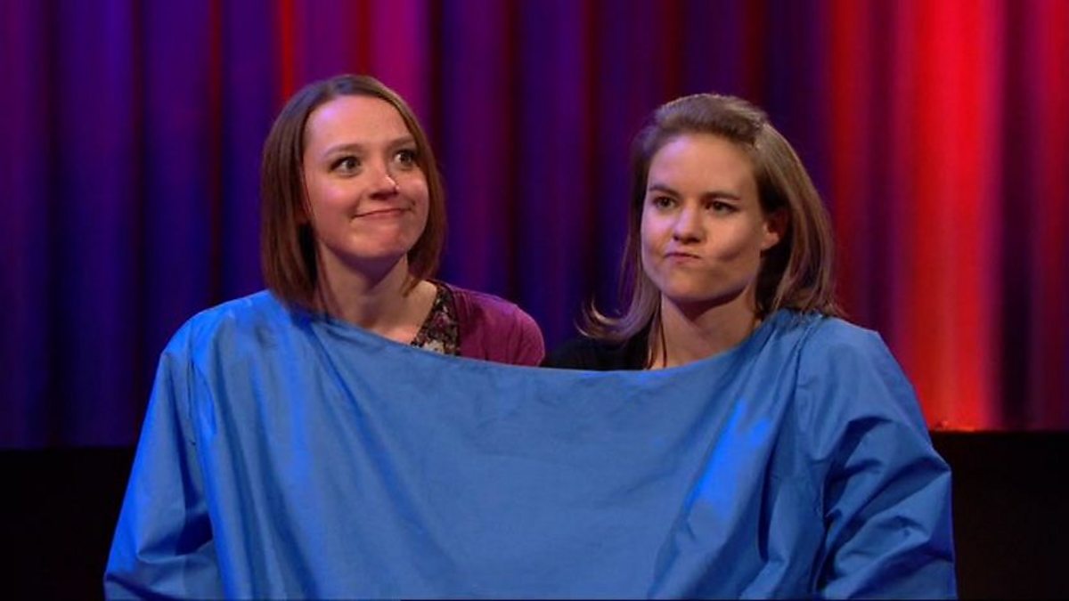 Hugh Dennis' guests are grouped into pairs whilst they improvise taking part in an extreme makeover programme. The twist being that each couple must speak as one!