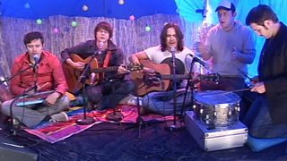 Cashier No.9 treat us to an acoustic rendering of their track Gold Star at the Glasgowbury Festival in July 2010.