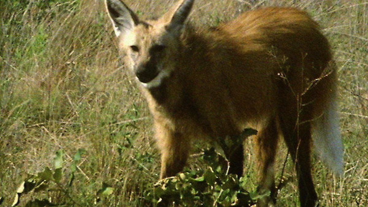 Maned wolves have strongly vegetarian tastes and eats lots of fruit. But they will also eat birds when they can. The tinamou is particularly at risk as it is almost flightless.