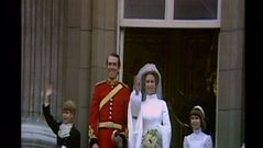 Coverage of the wedding of Princess Anne and Captain Mark Phillips from Westminster Abbey. Features the processions along the route from Buckingham Palace to the Abbey, the service and the appearance of the bride and groom on the Palace balcony.