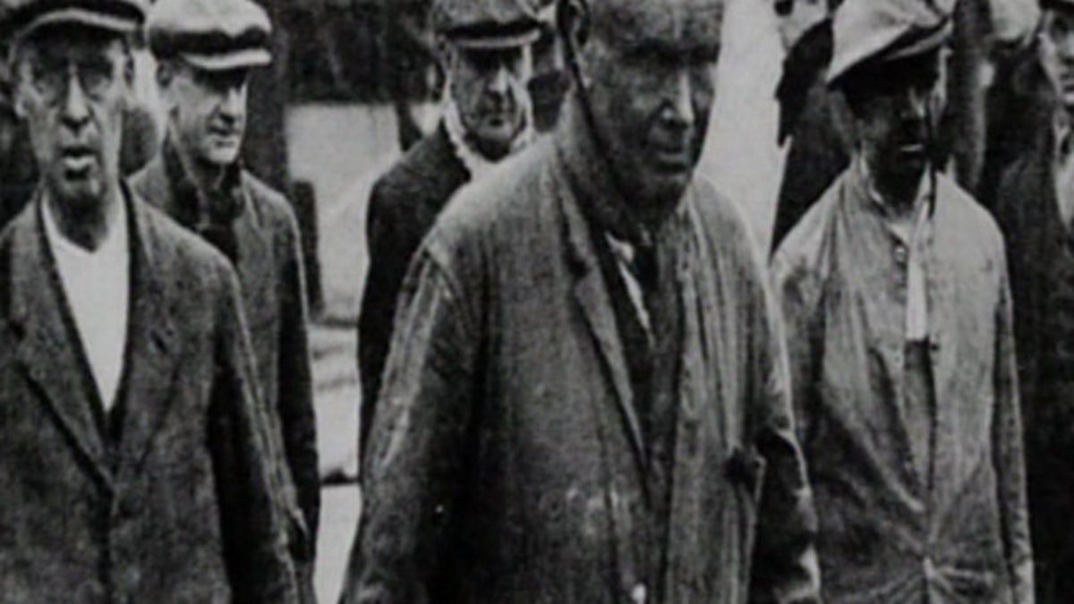 Archive film and Stuart Hibberd's BBC radio news reports from the Gresford mining disaster in 1934 where 266 men died, focusing on the rescue operation and the final sealing of Gresford Pit. Mention is made of the subsequent enquiry.