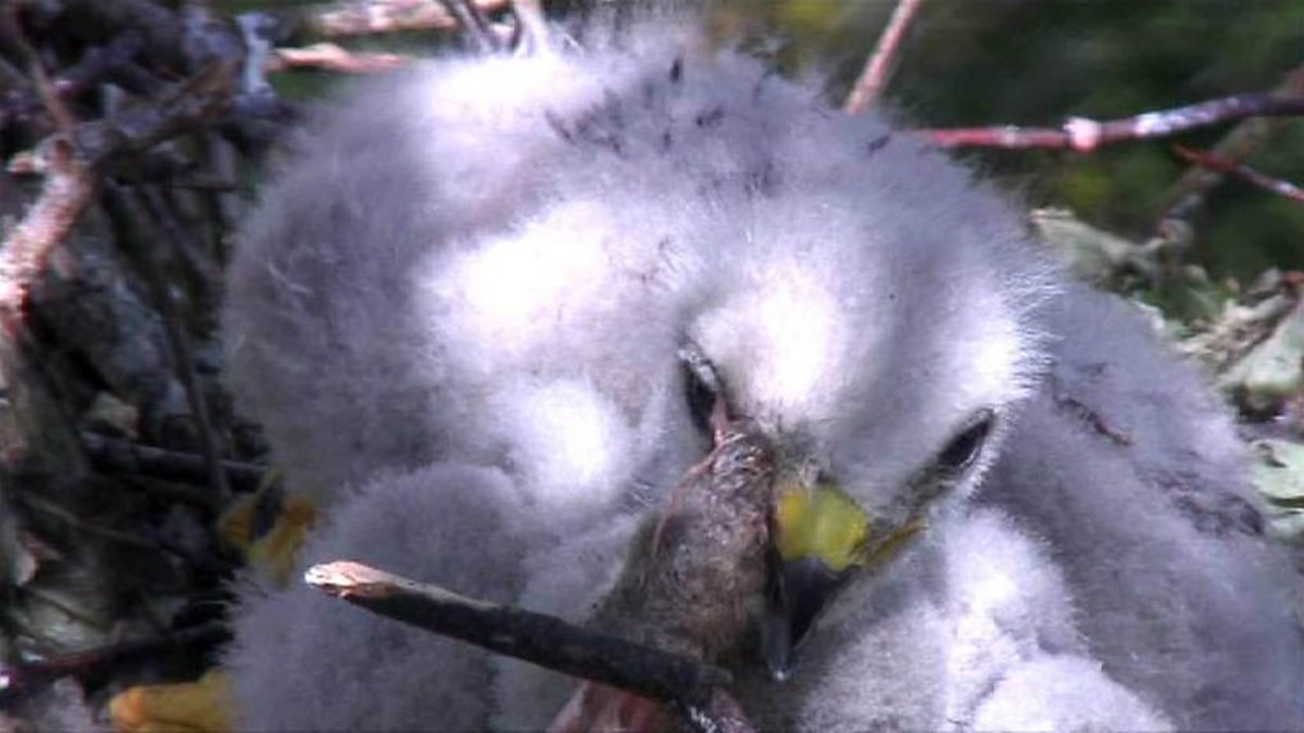 Chris Packham and Kate Humble explain how a buzzard chick has a digestive tract adapted to cope with awkward food. Watch one battling to eat a rabbit leg.