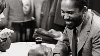 Director Anthony Wall introduces exiled South African Jazz trumpeter Masekela and we see him perform at his mobile recording studio on the South Africa / Botswana border. Clip taken from the 1985 Arena film Hugh Masekela 'The African Ambassador'