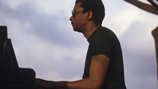 A sequence from BBC Arena's film A Brother with Perfect Timing which moves between Ibrahim (aka Dollar Brand) in his hotel room and images from his home country of South Africa.