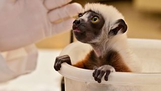A baby Coquerel's sifaka worries the Duke lemur centre's vets.