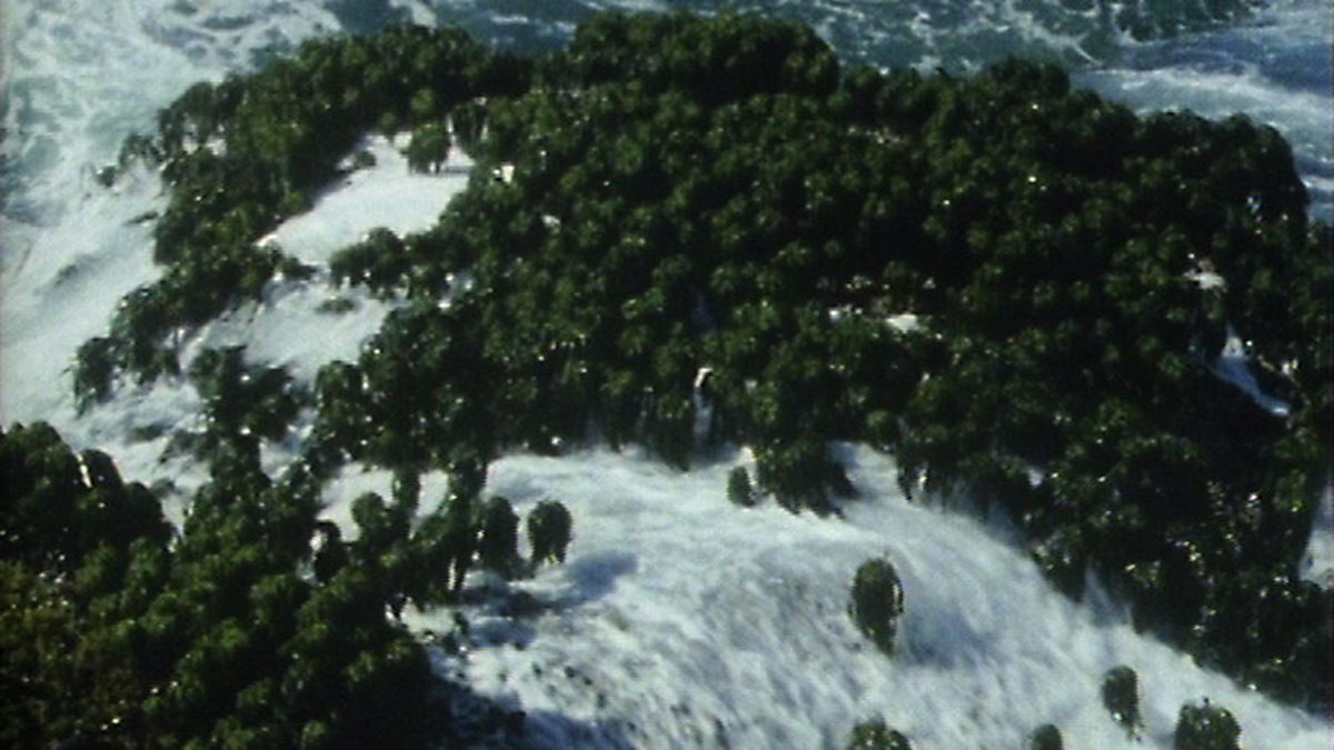 On the most exposed types of rocky shore, mussels are ousted by a special type of alga called a sea palm, which only grows on the north-west coast of North America. The sea palm has a crown of leaves at the top of its rubbery stem which it uses to harness the power of the waves and attack the mussels. In spring a sea palm may attach itself to an individual mussel. When the sea palm is mature and out of water, it will produce spores which trickle down its leaves into the mussel bed. Later, when autumn storms come, the waves may catch the plant's fronds and rip it, and the mussel it holds, off the rock. The spores left by it and its neighbouring plants can thus grow on that bare rock, thanks to the sacrifice of that first plant.
