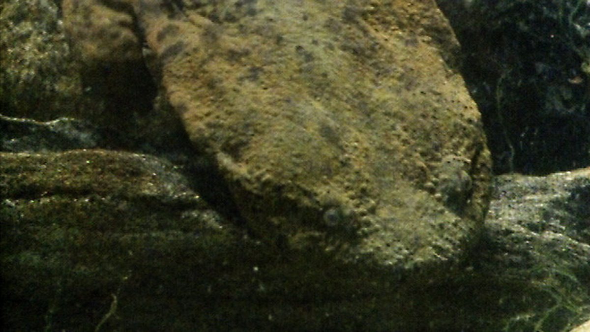 The hellbender newt lives in cold fast-flowing streams in North America. When young it feeds on insect larvae but as an adult it can grow to be more than two feet long, so must then hunt larger prey. Crayfish fit the bill, but they often escape with a convulsive snap of their tail that shoots them through the water. Both animals try to keep out of the current and habitually creep into crevices. It is in one of these crevices that the newt finally gets a crayfish, swallowing it whole.