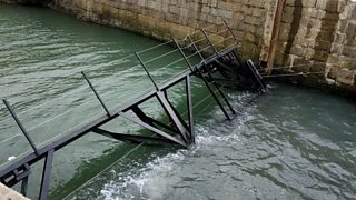 The new lock gate has been opened for the first time at Charlestown Harbour