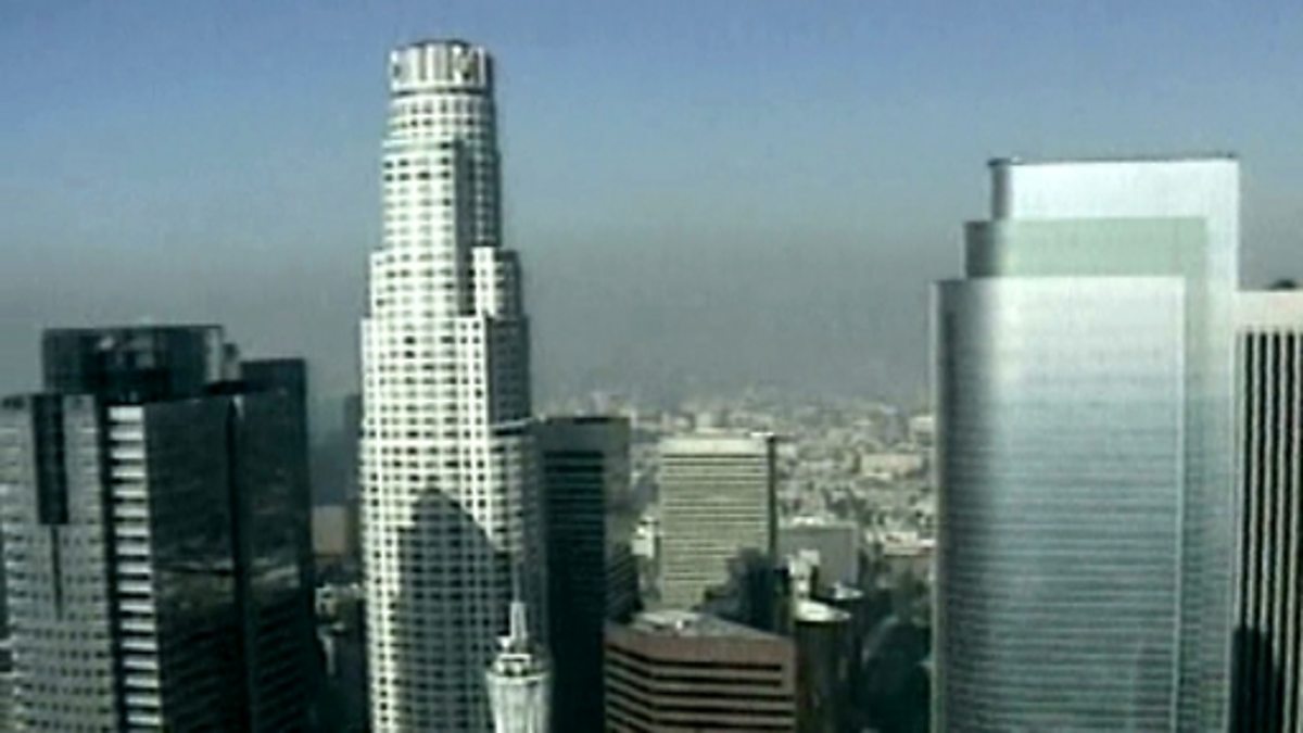 A description of Los Angeles with stereotypical images of the city and Hollywood. LA has a number of deep-seated urban problems, including homelessness. Project Step is an organisation which negotiates employment opportunities for homeless people. Los Angeles' other problems include traffic congestion, air pollution, unemployment and crime. The city is also at risk from earthquakes. Many people wish to leave the city to escape these problems.