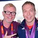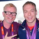 Chris Evans meets the Knight Rider Sir Chris Hoy on the Champions Balcony at the Olympic Park after he became Britain's most decorated athlete of all time.