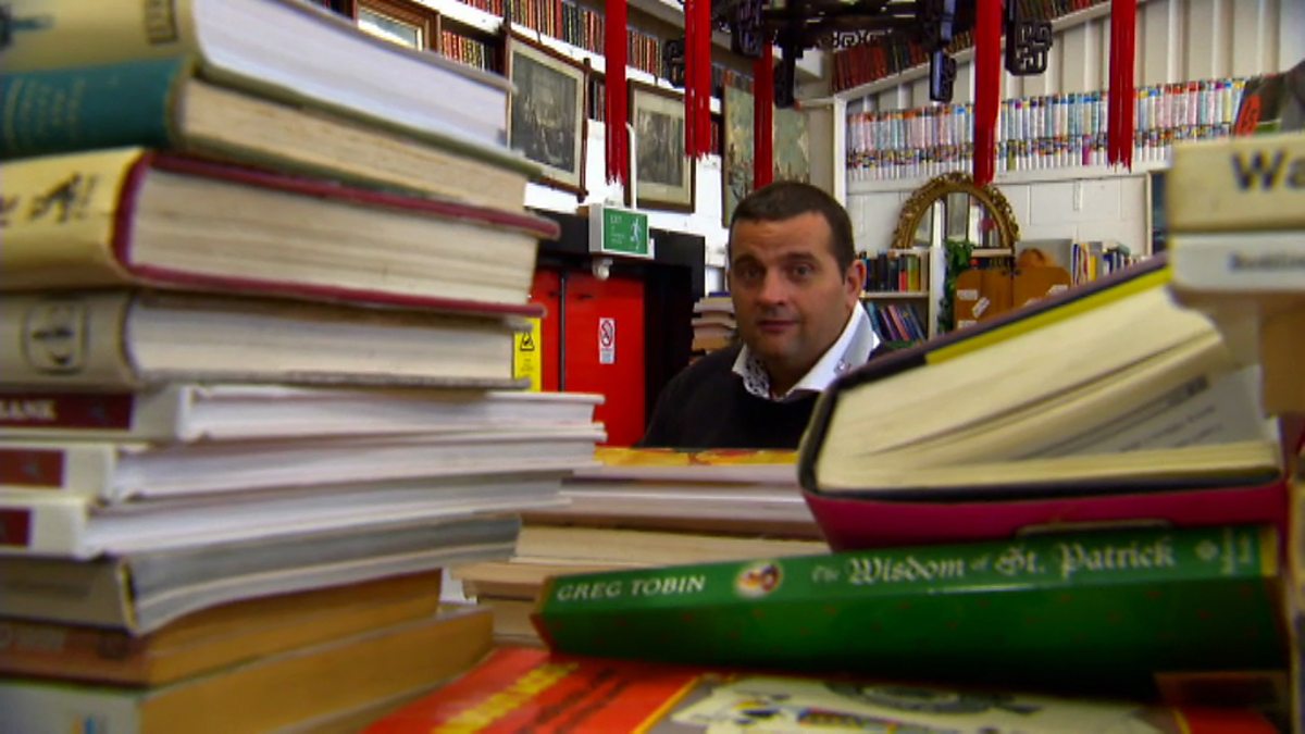 Tha Derek air chall ann an àite eireachdail a tha làn leabhraichean!