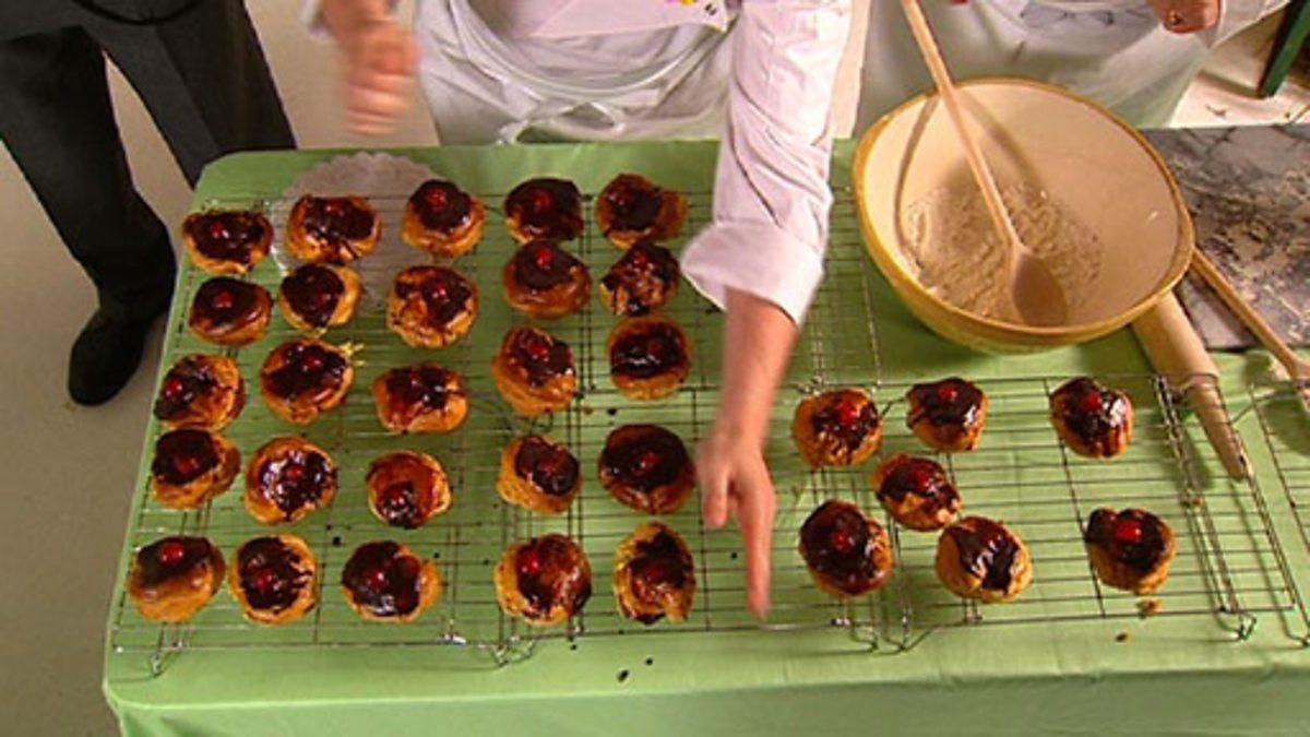 Breaking numbers into five and a bit is demonstrated as a strategy for adding single digit numbers. An interviewer is with two cooks who are all in a flap. They think they have lost a competition to bake the most buns because some of their buns have been stolen. They are persuaded to count the buns. One cook has made 25 buns and the other has made 7. They start by showing the 25 and the 7. They add 7 by counting on 5 to make 30 and then add 2 making 32. This means they have won the competition after all.