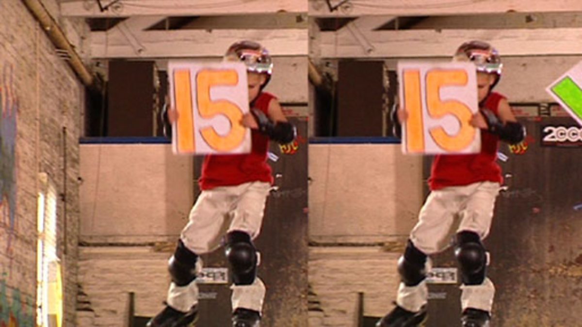 The doubling plus one strategy for 11+12, 15+16 and 20+22 is demonstrated using skateboarders. A music video in three sequences shows skateboarders on ramps holding near doubles. The doubles and a plus 1 placard are then held to show how to use the doubling plus one strategy.