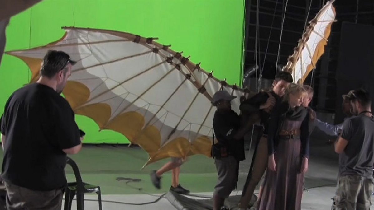 Go behind the scenes with the star of Leonardo, Jonathan Bailey, as he shoots a dramatic flying scene.
