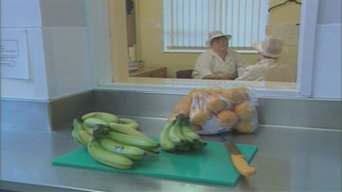 Kitchen staff talk about steps they have taken to provide healthy meals for schools in Northern Ireland. They usually steam, bake or boil most foods and try to avoid frying, because eating too much fat causes health problems later in life. Presenter, Christine Bleakley, visits a school kitchen and learns how menus are carefully planned to offer a balanced diet.